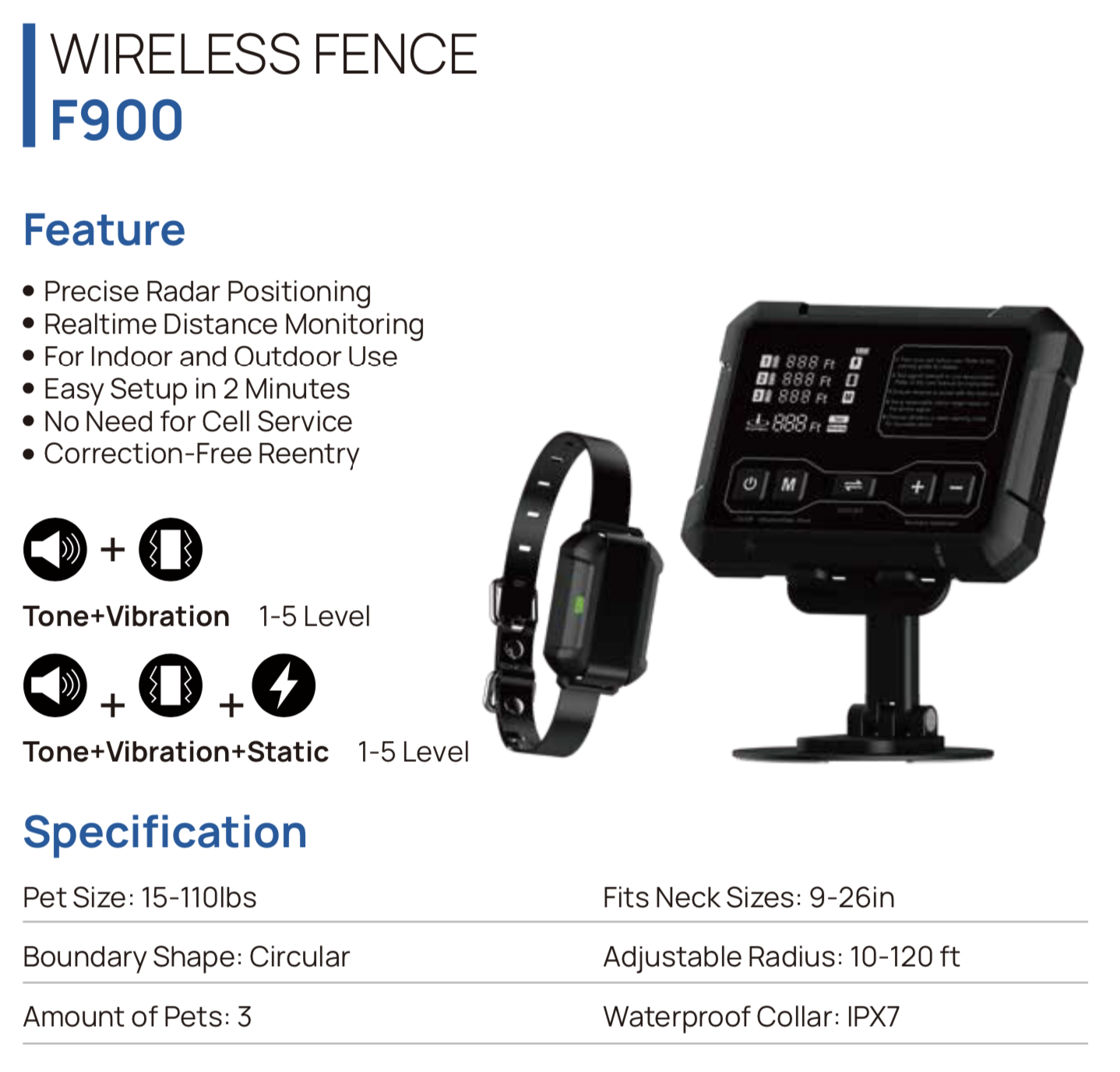 RADAR F900 EXTRA ontvanger – onzichtbare omheining en correctie halsband voor 2e hond – ca. 42m2 cirkelbereik