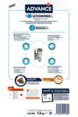Advance Kitten is speciaal samengesteld om te voldoen aan de voedingsbehoeften van kittens. Het voer is gemakkelijk te verteren en draagt bij aan een normale ontwikkeling van de hersenen en het gezichtsvermogen, en aan de optimale groei van botten, dankzij omega 3-vetzuren, vitaminen en mineralen. Nucleotiden zijn toegevoegd om de natuurlijke immuunrespons te helpen behouden. De brokjes zijn kleiner van formaat om in de mond van een kitten te passen.