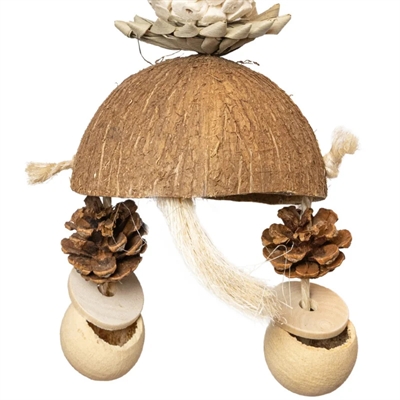 – Vogelspeeltje van natuurlijke materialen zoals kokosnoot en dennenappels
