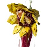 De Back Zoo Nature Sunflower is een vrolijk, bloemvormig vogelspeeltje dat uitnodigt tot knabbelen, ontdekken en spelen. Het speeltje is gemaakt van natuurlijke materialen zoals palmbladeren, vezelbanaan (abaca) en buri en sluit aan bij het natuurlijke foerageergedrag van vogels. Door de verschillende onderdelen en texturen worden vogels actief bezig gehouden en gestimuleerd om hun omgeving te verkennen. Elke Sunflower is handgemaakt, wat zorgt voor een unieke uitstraling per stuk, en is eenvoudig op te hangen in het vogelverblijf.