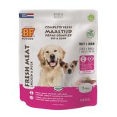 BF Petfood vleesvoeding is een natuurlijke, volledige en houdbare hondenvoeding op basis van verse kip, eend en vis, orgaanvlees, rijst, schapenvet en natuurkruiden. Is uitermate geschikt voor vleesdagen, als traktatie, voor onderweg, smaakmaker, bij omschakeling naar ander voer of voor honden die slecht reageren op droogvoeding. Met afsluitbare verpakking en handige portieverpakkingen (7x90g/630g). Geschikt voor iedere hond, van pup tot senior. Ook te verkrijgen als 800 g worst.
