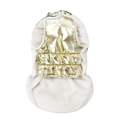 De Croci Hondenjas Padded Gilded 30 cm is een hondenjas voor koude dagen, gemaakt met zilver en goud, een warme voering van imitatie schapenbont, en opening voor halsband en tuig. Warm en toch classy voor de dag komen? Kies van voor de Croci Gilded hondenjas! Met deze waterdichte hondenjas blijft jouw hond warm en droog deze winter, maar komt hij of zij ook nog eens stijlvol voor de dag. Deze jas is uitgevoerd in wit met goud en zilver, en gevoerd met heerlijk zachte, warme imitatie-schapenvacht. Door de combinatie van het elastische buikdeel ben je gegarandeerd van een perfecte pasvorm. De jas kan zowel met tuig als met halsband gebruikt worden. Gemaakt van 100% gerecycled polyester!