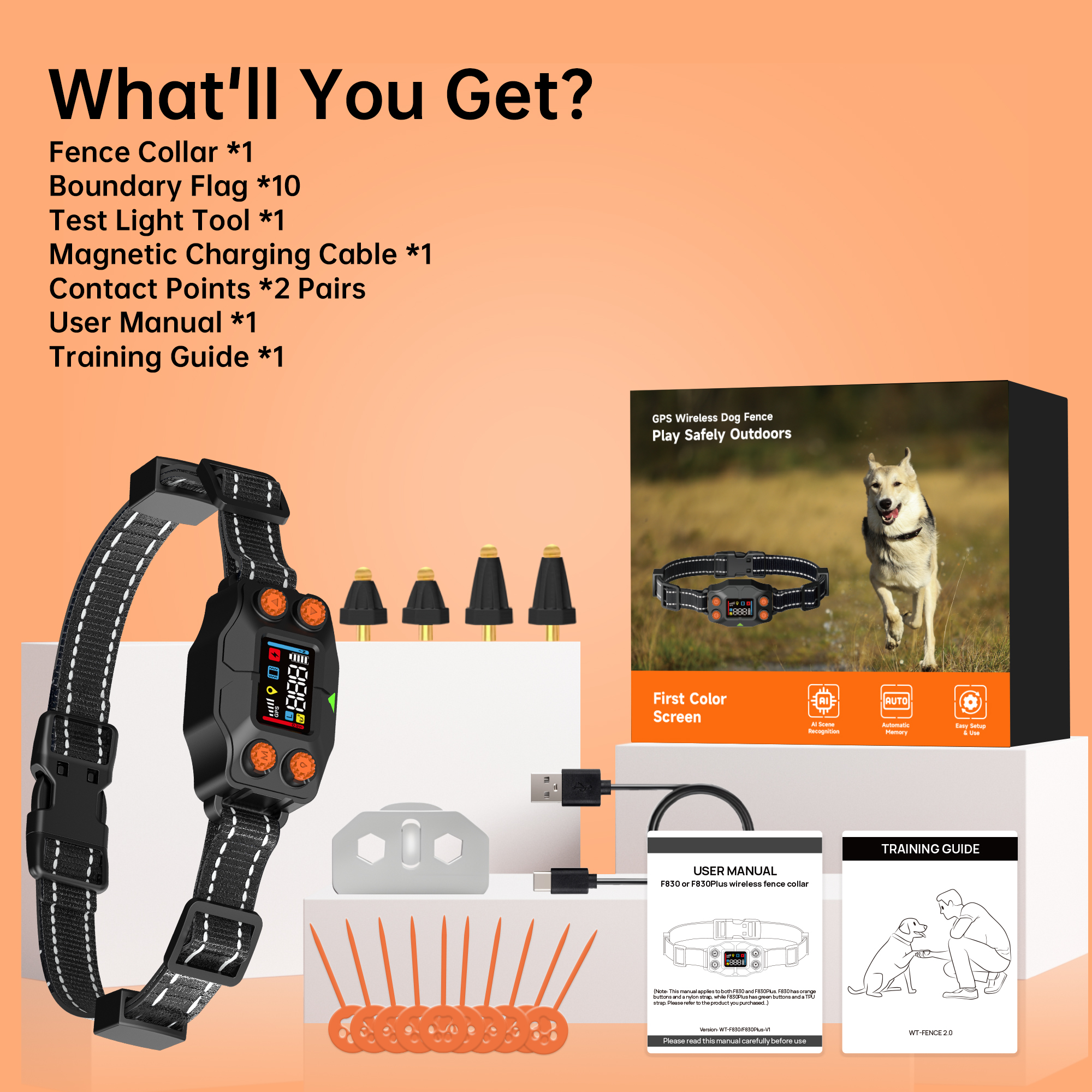 F830 Kleinere honden v.a. 8kg GPS onzichtbare omheining via satelliet tot 900 meter bereik