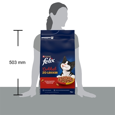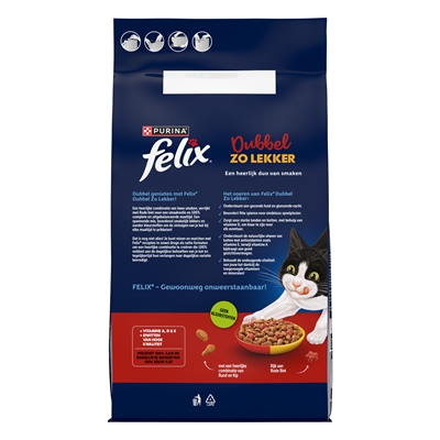 De Felix Droog Dubbel Zo Lekker Rund/Kip/Rode Biet is een complete droogvoeding met een mix van knapperige brokjes in verschillende vormen en smaken. De combinatie van rund, kip en een vleugje groenten zorgt voor variatie in elke maaltijd, terwijl de samenstelling voorziet in de dagelijkse voedingsbehoeften van je kat. De brokjesstructuur draagt bij aan het kauwen en maakt de voeding geschikt voor dagelijks gebruik bij actieve katten.