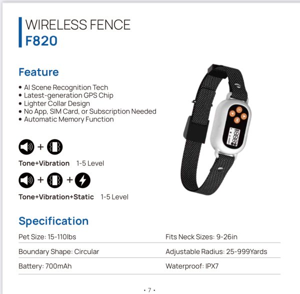 Kleinere honden GPS – F820- v.a. 7kg – onzichtbare omheining via satelliet tot 900 meter bereik