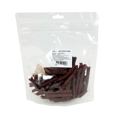 De I Am Struisvogel Staafjes van 400 gr zijn heerlijke snacks voor de hond, aanvullend diervoer met struisvogelvlees als gezond tussendoortje. Verwen jouw hond met deze lekkere I Am Struisvogel staafjes! Deze hondensnacks zijn malse staafjes met heerlijk struisvogelvlees, voor een verrassende traktatie. De staafjes zijn compact en daardoor bijzonder geschikt als beloning bij het trainen of als tussendoortje. Geschikt voor puppy's ouder dan vier maanden.