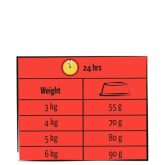 Samenstelling: granen, vlees en dierlijke bijproducten (kip 25%), plantaardige eiwitextracten, oliën en vetten, plantaardige bijproducten, groenten, gist, mineralen