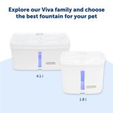 De PetSafe Viva is een moderne drinkfontein met een inhoud van 1,8 liter, ontworpen om katten en kleine honden te voorzien van continu fris en stromend water. Dankzij het dubbele filtersysteem – met een koolstoffilter en schuimfilter – blijft het water helder en aangenaam van smaak. De stille pomp zorgt voor een rustige drinkervaring en minder schoonmaakwerk voor het baasje.