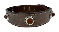 Sazzz Halsband Hond Boho Treasure Stone Vintage Leer Bruin 42-50X3,5 cm