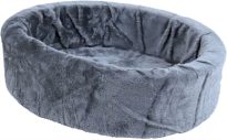 Rond honden bed met opstaande rand. De pluche hoes is afneembaar.