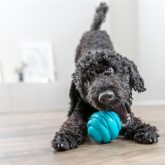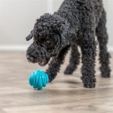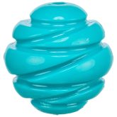 De Trixie Bal Super Strong TPR Petrol is een robuust speeltje met een opvallend gedraaid design dat uitnodigt tot actief spel. De spiraalvorm zorgt voor een verrassende stuiter en maakt het spelen extra interessant voor je hond. Dankzij het compacte formaat is de bal eenvoudig vast te pakken en geschikt voor apporteerspelletjes, zowel binnen als buiten.