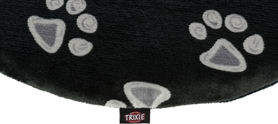 Het Trixie Kussen Jimmy Ovaal Zwart Met Pootprint 115 x 72 cm is een plat hondenkussen van zacht pluche met polyestervlies vulling, ideaal om als ligmat of in kunststof hondenmanden te gebruiken. Door de geringe dikte is dit kussen voor vele toepassingen te gebruiken. Kussen Jimmy is zeer geschikt om als opzichzelfstaande ligmat te dienen, maar ook ideaal om te gebruiken voor wat extra comfort in kunststof hondenmanden, zoals de Sleeper hondenmand. Het kussen is bekleed met polyester en heerlijk zacht pluche en eenvoudig af te nemen. Het kussen is wasbaar, de voering met de hand, de bekleding op 40 graden in de wasmachine.