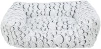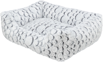 De Trixie Mand Mila Hoekig Pluche Wit/Grijs 50X40 cm is een originele hondenmand met een leuk patroon en zachte structuur pluche, met slipvaste onderkant. Deze mand is een ware blikvanger in jouw huis! De bijzondere stof heeft een leuk patroon van cirkels en is daarnaast heerlijk comfortabel door de zachte pluche structuur. De polyestervlies vulling zorgt voor voldoende steun en op de rand kan de hond fijn zijn kop laten rusten. Bovendien zorgen de lage instap in de rand en slipvaste onderkant dat het dier zonder moeite in- en uit de mand kan stappen.