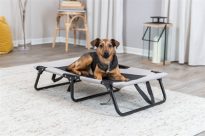 De Trixie Stretcher Hondenligbed Grijs / Zwart van 79X50X19 cm is een inklapbaar hondenbed, met stevig metalen frame en mesh-stof voor een comfortabele verkoeling. Gaat jouw hond graag mee naar het strand, de camping, of zoek je gewoon een comfortabel bed voor in de tuin of in huis? Deze hondenstretcher van Trixie biedt iedereen wat hij nodig heeft! Dit hondenligbed in de vorm van een stretcher bestaat uit een stevig metalen frame, bekleed met Oxford polyester. De bekleding is voorzien van mesh-stukken die veel lucht doorlaten en zo zorgen voor verkoeling op warme dagen. Omdat de stretcher inklapbaar is en compact op te bergen, is hij ook ideaal om mee op vakantie of op reis te nemen. De rubberen voetjes voorkomen verschuiven bij het op- en afstappen en de bekleding is afneembaar en wasbaar op 30 graden.