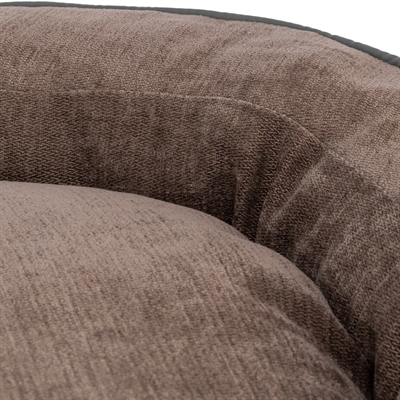 De Trixie Vital Hondenmand Lennox Rond Bruin is een orthopedische mand die speciaal ontworpen is voor maximaal ligcomfort. Dankzij de combinatie van visco-elastische schuimvlokken (met memory-effect) en een stabiele randvulling van schuimrubber en polyestervezel krijgt je hond optimale ondersteuning tijdens het rusten. De hoes van meubelstof (Chenille) voelt zacht aan, is afneembaar en wasbaar (op 40 °C), terwijl de slipvaste onderkant ervoor zorgt dat de mand goed op zijn plek blijft liggen. Ideaal voor honden die houden van een knusse, comfortabele slaapplek.