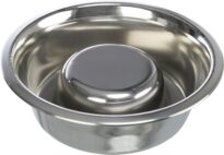 De Trixie Voerbak Hond Slow Feeding RVS 0,6 ltr 17 cm is een slowfeeder van roestvrijstaal met antislip ring. Schrokt jouw hond zijn voer naar binnen? Dan is een slowfeeder een handige uitkomst voor jullie. In deze voerbak van roestvrijstaal zit een verhoging, waardoor jouw hond automatisch rustiger gaat eten. Deze voerbak is geschikt voor alle voertypes en heeft een antislip ring die schuiven voorkomt.